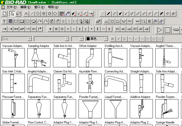 2、ChemWindow 6.0 ChemWindow 6.0 主要功能是能绘出各种结构和形状的化学分子结构式及化学图形,可直接采用工具箱中的各种图标进行操作,非常快速、便捷。大量的结构式模板,使用起来非常方便,在绘制化学专业图形方面,速度快、操作简便、功能强大,还具有一般其它绘图软件所不具备的化学分子图形编辑功能。 另一重要的作用是,它能提供许多实验仪器进行组装,可作为演示工具等。ChemWindow运行于Windows平台下,可与其它软件联用, 兼容性好,可出色地完成一般化学科技论文的撰写及其它化学工作。 ChemWindow 6.0 不能输出为平面设计软件所用的文件格式,只能用 Illustrator 中转粘贴的方法输入到 InDesign 中。 ChemWindow 6.0 软件开发者网站:http://www.softshell.com,ChemWindow 6.0 有汉化版,程序约为14MB。