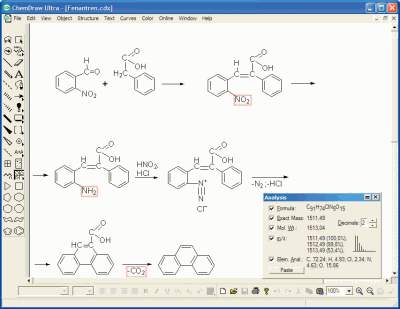 1、ChemDraw ChemDraw是世界上使用最多的大型软件包ChemOffice中的一个组件,其最新版本是Chem Office Ultra 2006 (ChemDraw Ultra 10.0) 。 ChemDraw是国内外最流行、最受欢迎的化学绘图软件,它可以建立和编辑与化学有关的一切图形。例如, 建立和编辑各类化学式、方程式、结构式、立体图形、对称图形、轨道等,并能对图形进行翻转、旋转、缩放、存储、复制、粘贴等多种操作。基于国际互联网技术开发的智能型数据管理系统,包含的多种化学通用数据库共四十多万个化合物的性质、结构、反应式、文献等检索条目的分析和利用,可为化学家的目标化合物设计、反应路线选择和物化性质预测以及文献的调用提供极大的方便。 ChemDraw软件有 Win、MAC 二种版本,在开发者网站:http://www.camsoft.com 提供试用版下载,约 275MB,在安装时可选择只安装 ChemDraw 部分。 ChemDraw Ultra 10.0 的功能是非常强大的,当然我们最关心的是与 InDesign 的配合问题,根据本人的试用,ChemDraw Ultra 10.0可以输出标准的 EPS 文件,但是在 ChemDraw Ultra 10.0中文字不能转曲线,输出的是内嵌字体的 EPS 文件,在置入 InDesign 时内嵌的字体不能被 InDesign 识别,会自动转换成系统默认字体。 如果用复制粘贴的方法也需经 Illustrator 中转。
