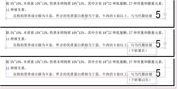 方法一: ①首先第5页与第12页这二个文本框必须是串接的,不是串接的就不能自动显示和改变转接页码。 ②在第5页文框末尾处适当位置输入“(下转第页)”,适当位置就是要保证“(下转第页)”不至于流到转接的文本框中。