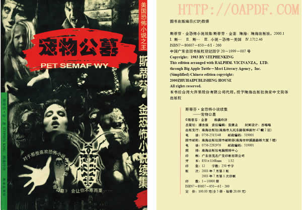 《宠物公墓》[美]斯蒂芬·金著;韩满玲译(珠海出版社,2003)